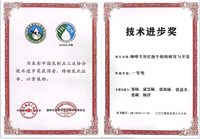 喜報!海河乳品公司榮獲中國乳制品工業(yè)協(xié)會“技術(shù)進(jìn)步獎一等獎”