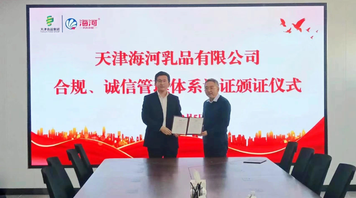 海河乳品公司成功獲得合規(guī)、誠信 管理體系雙認(rèn)證