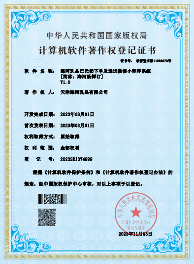 海河乳品公司順利通過“海河新鮮訂”小程序 軟件著作權(quán)認(rèn)證