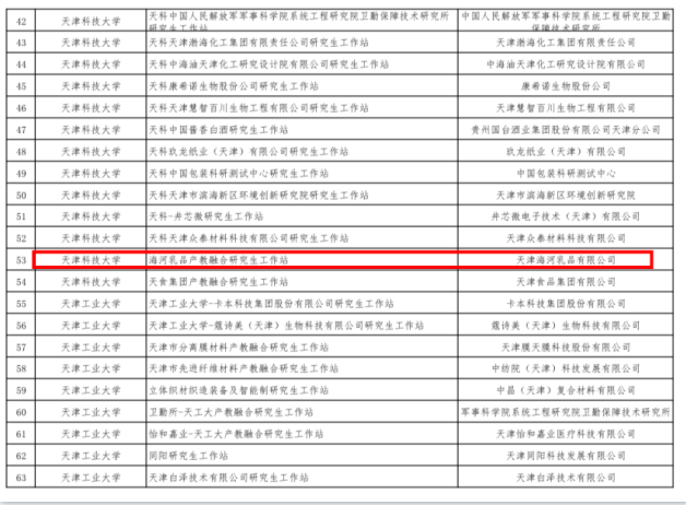 海河乳品-天津科技大學(xué)產(chǎn)教融合研究生工作站順利公示